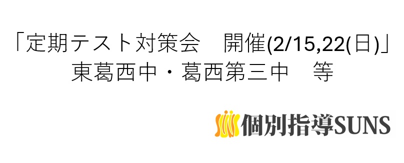 個別指導SUNSでは2/15(日)に、東葛西中や葛西第三中などの近隣中学校生徒向けに